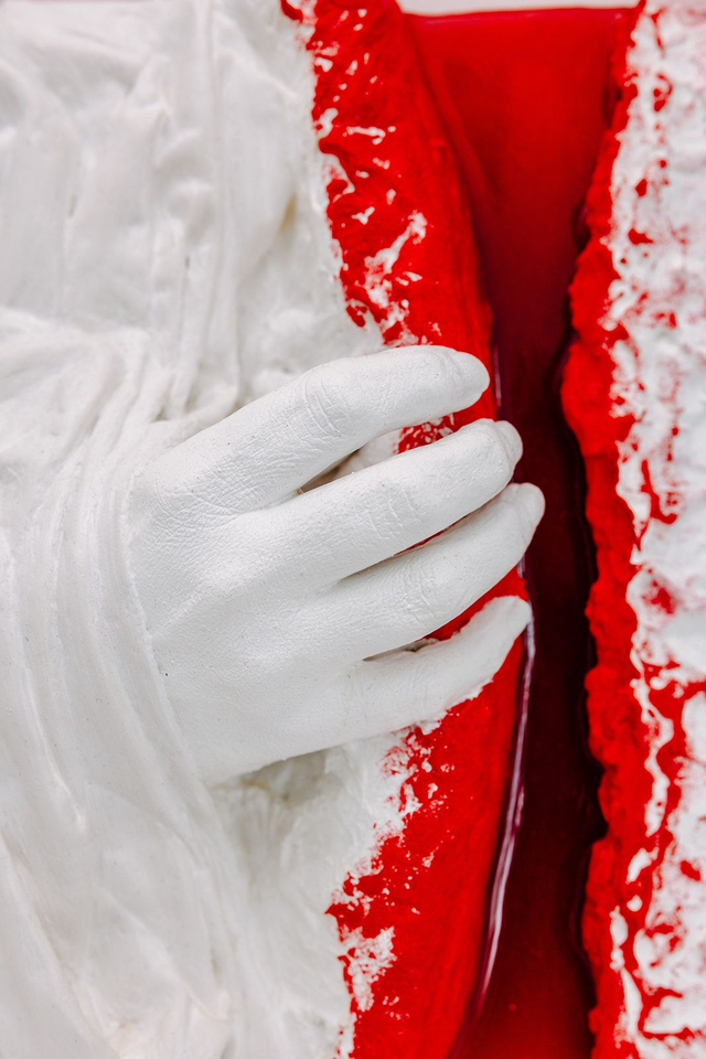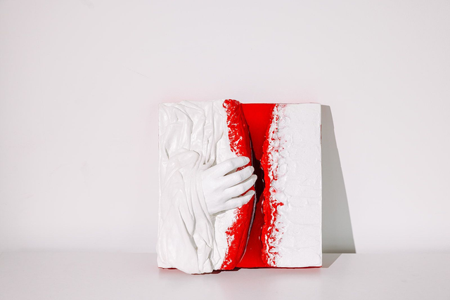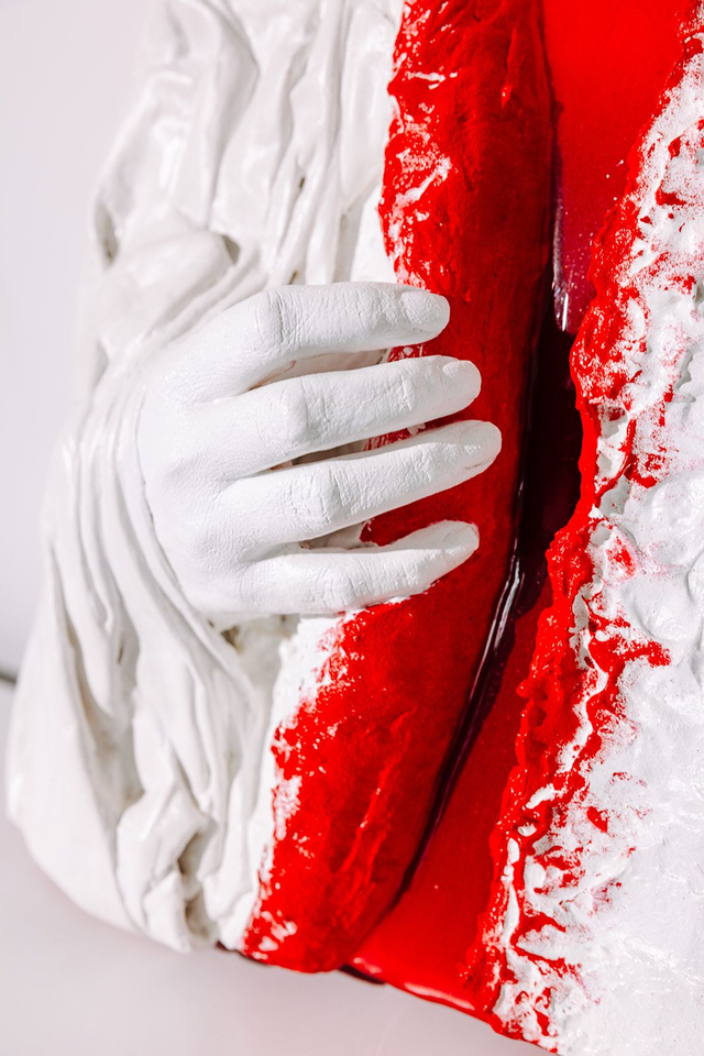 Ein kraftvolles 3D-Hochrelief aus Gips, Stoff und Resin. Das Unikat „AUFBRECHEN“ aus der Serie „Innerstes“ fängt den Moment der inneren Befreiung und des emotionalen Durchbruchs ein. Die Hand bricht aus der weißen Hülle in das leuchtend rote, hochglänzende Resin-Innere. Ein ausdrucksstarkes Statement-Piece mit 8 cm skulpturaler Tiefe. Bereits auch im LiTE-HAUS Berlin ausgestellt. Unikat, April 2024.