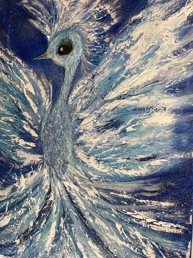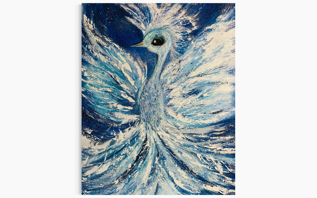 Ein kraftvolles Fine-Art-Unikat von LadyMARIANN Arts. Ein Wesen aus Eis, Energie und Licht erhebt sich aus der Tiefe und markiert den Moment der Transformation. Intensive Blau- und Weißnuancen, dynamische Strukturen und ein glänzendes Finish verleihen dem Werk eine beeindruckende Präsenz. Teil der exklusiven Phönix-Serie.
