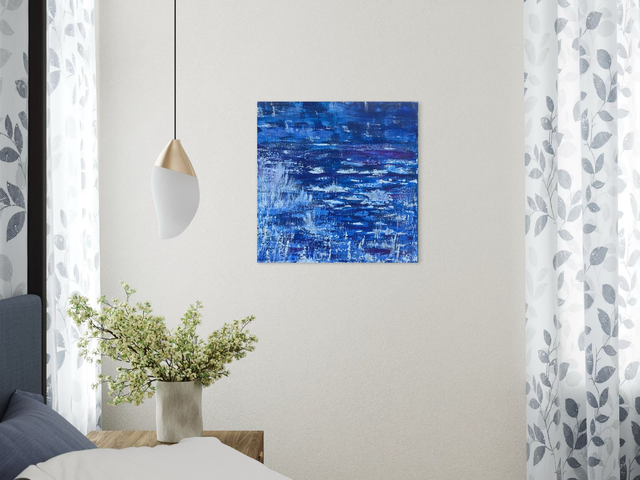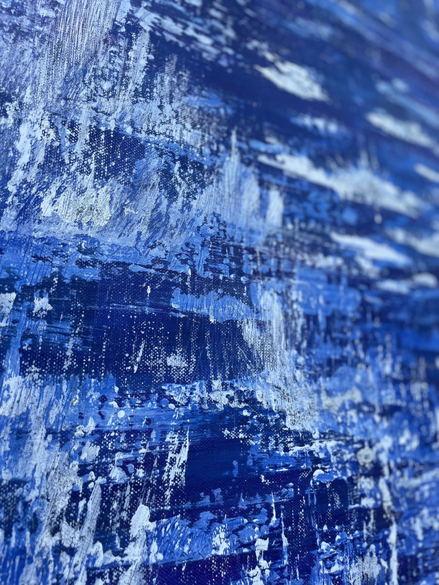 „STURM in Kobalt“ ist ein kraftvolles Acryl- und Strukturkunstwerk, das die Tiefe intensiver Blautöne mit dynamischer Faktur verbindet. Das 60×60 cm große Unikat war Teil der Berliner Ausstellung „Blue Mood“ (LiTE-HAUS Galerie) und zieht durch seine reliefartige Oberfläche und seine atmosphärische Energie jeden Blick auf sich.